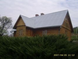 Do sprzedania drewniany dom wolnostojący w okolicach Jasła, dom o powierzchni 90m2, usytuowany na działce 10800 m2 (1, 08ha), 3 pokoje, stan budynku bardzo dobry, wszystkie instalacje wymienione. Dom z bala drewnianego położony przy lesie na zachodnio-południowym stoku na częściowo zalesionej działce z panorama na gory Beskidu Niskiego. Dom po kapitalnym remoncie w 1998r. Na działce budynek gospodarczy30m2. Nowe okna drewniane, nowe podłogi z desek - Jodła, dach blacha ocynk. Ogrzewanie kominkowe z rozprowadzeniem po budynku. W cenie wyposażenie domu. Dom w bardzo spokojnej okolicy, lasy, zwierzęta, grzyby.
